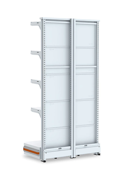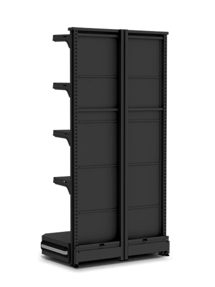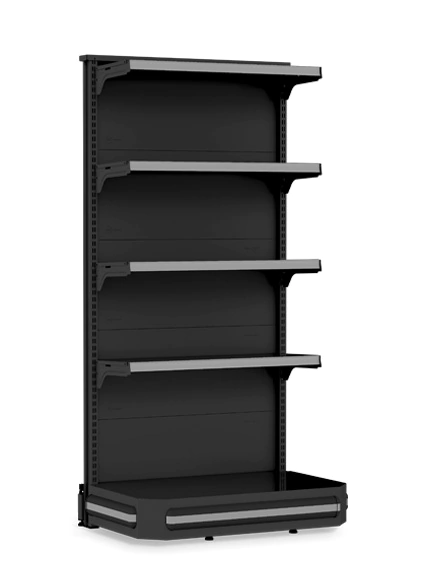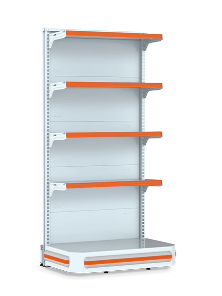 Utilizada no início e no final das fileiras de Gôndolas Centrais para tornar a loja mais atraente. Ideal para lojas de médio porte, como supermercados, petshops, home centers, agropecuárias, lojas de construção e outros.